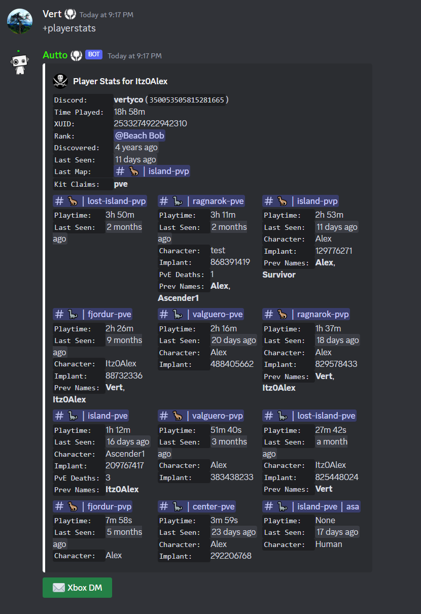 +playerstatsin the Discord to see your in-game player.